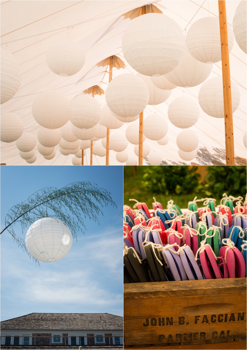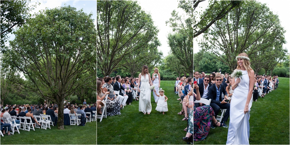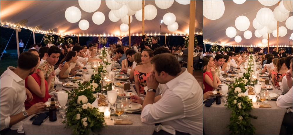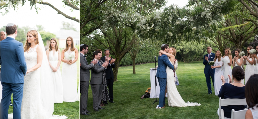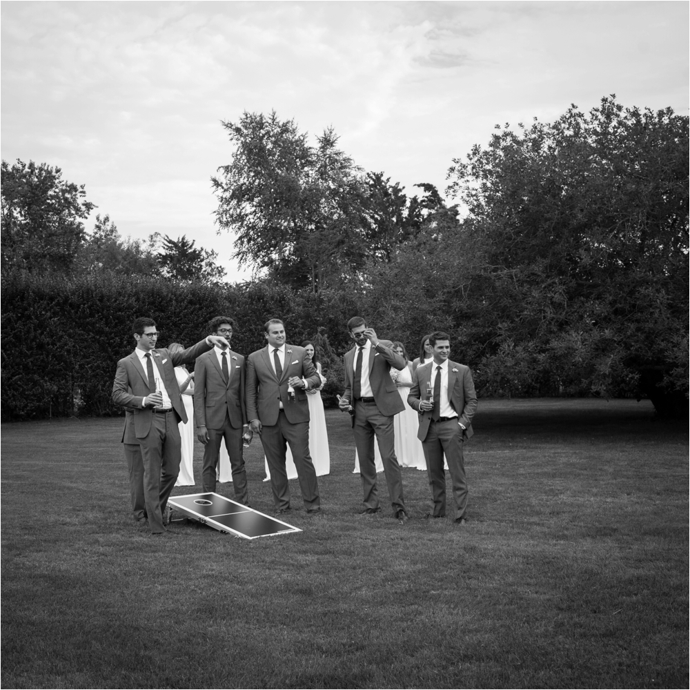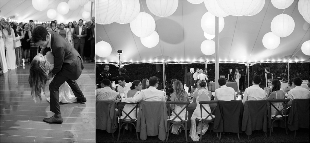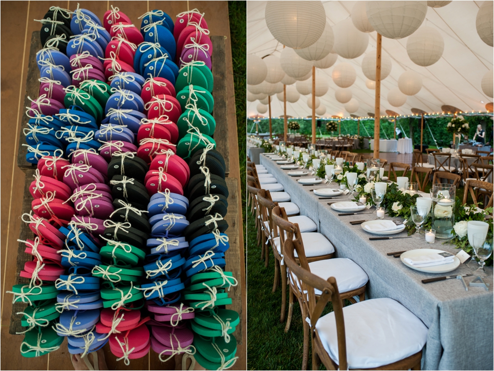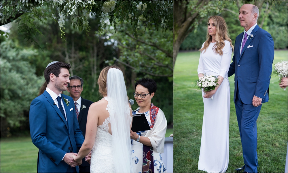 Welcome to Ali and Jason’s relaxed backyard affair with a touch of Jay Gatsby, brought to life by Duke and Van Deusen Weddings. Sperry Tents set up one of their signature sail cloth tents at the bride’s summer home in Southampton, NY, Matt Murphy lit the heck out of it with a zillion giant white paper lanterns bride’s summer house, the bridal party rocked it in all white, and Anastasia of Sag Harbor Florist blew us away with her wedding canopy of flowers and branches strung between an aisle of trees.