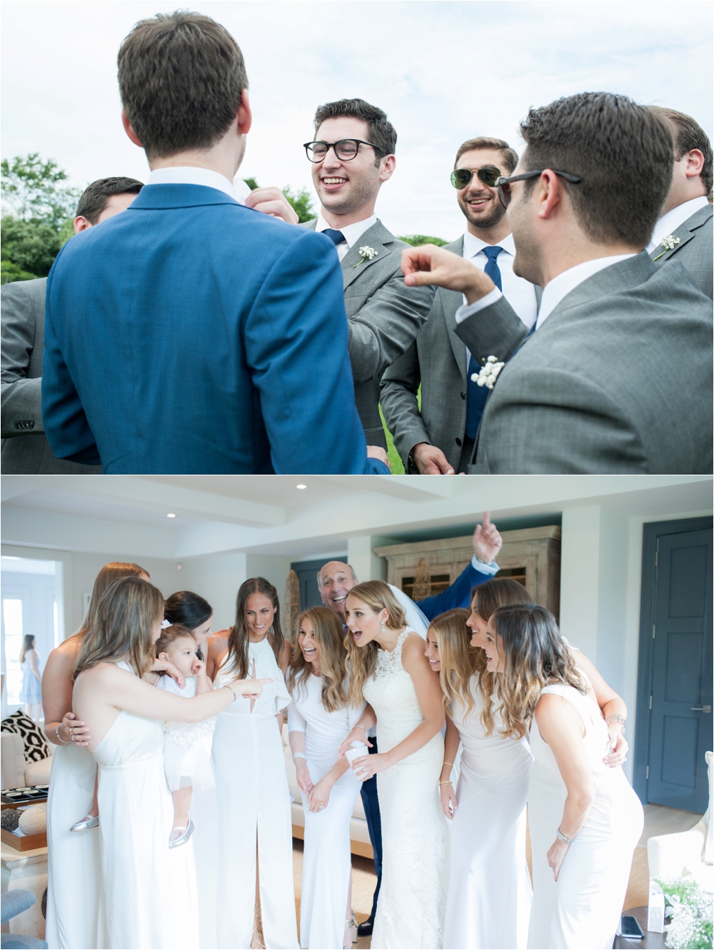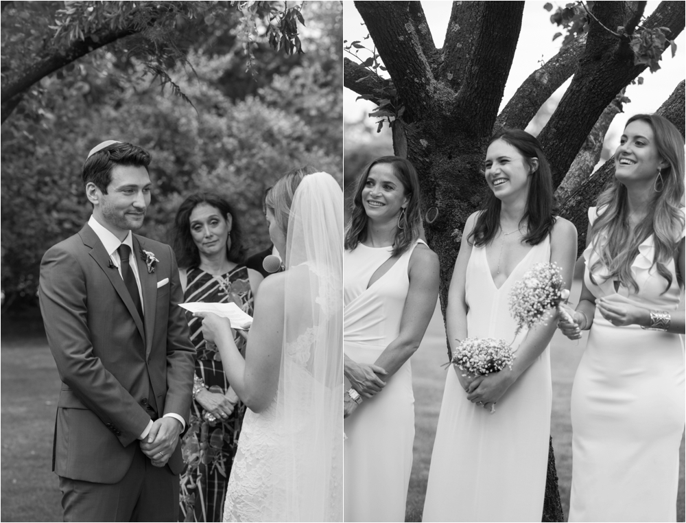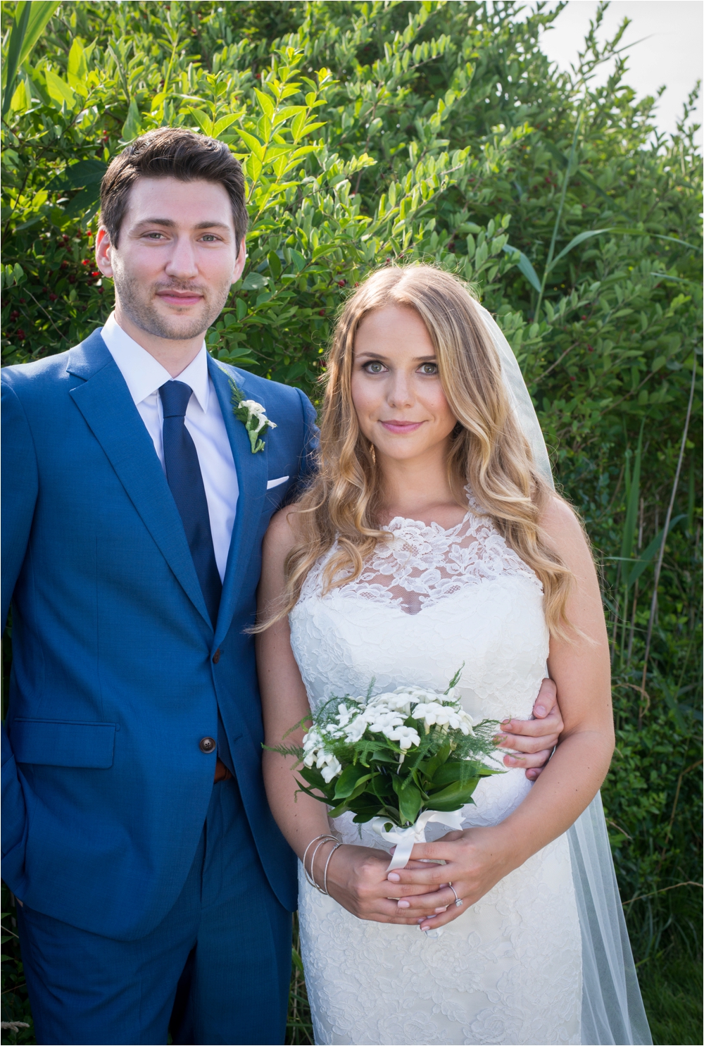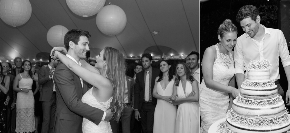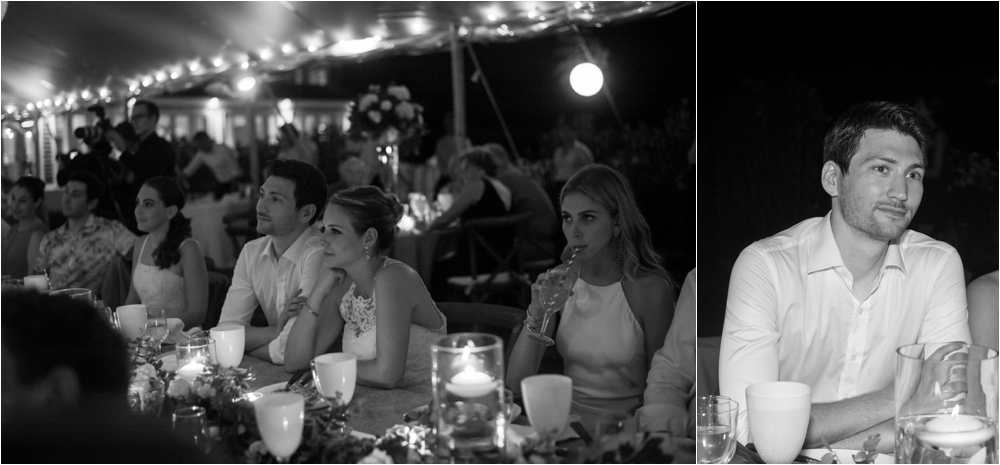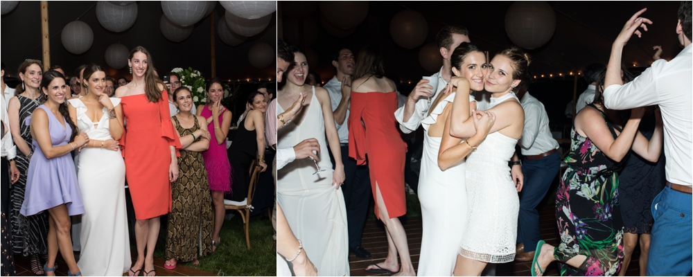 Welcome to Ali and Jason’s relaxed backyard affair with a touch of Jay Gatsby, brought to life by Duke and Van Deusen Weddings. Sperry Tents set up one of their signature sail cloth tents at the bride’s summer home in Southampton, NY, Matt Murphy lit the heck out of it with a zillion giant white paper lanterns bride’s summer house, the bridal party rocked it in all white, and Anastasia of Sag Harbor Florist blew us away with her wedding canopy of flowers and branches strung between an aisle of trees.