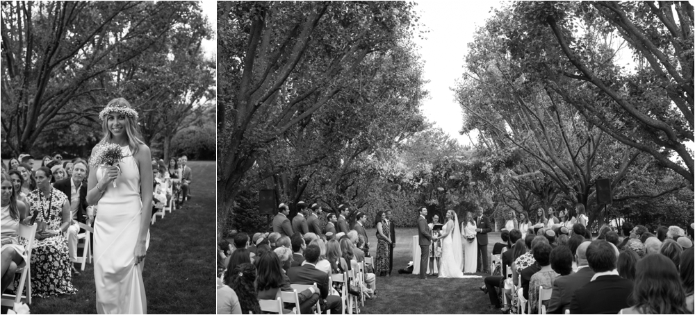 Ali, in a slinky sexy lace Anna Maier gown, floated down the center of the aisle of trees that seemed made for a wedding ceremony as romantic and classic as this.